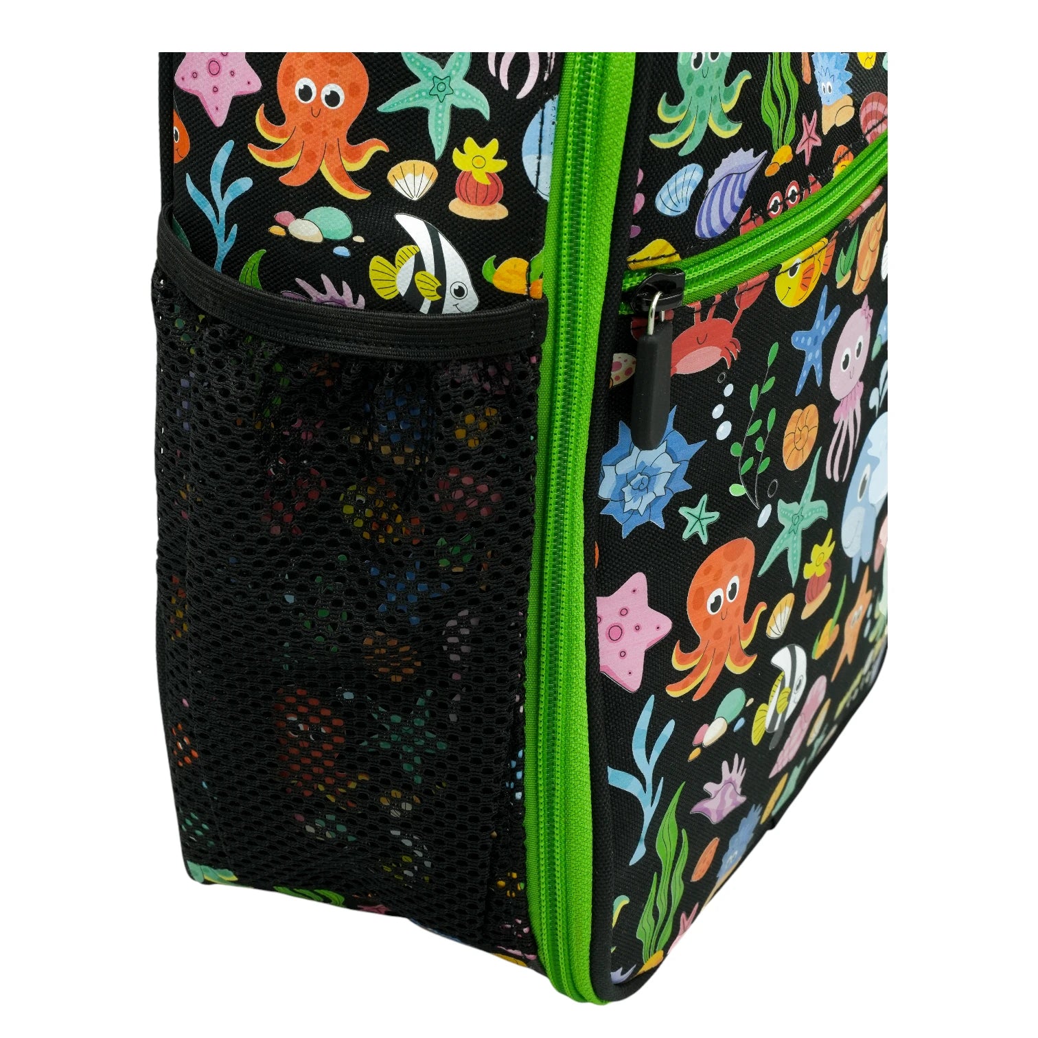 Featuring a vibrant undersea print with fish, mermaids, and ocean treasures, it makes lunchtime feel like a dive beneath the waves.