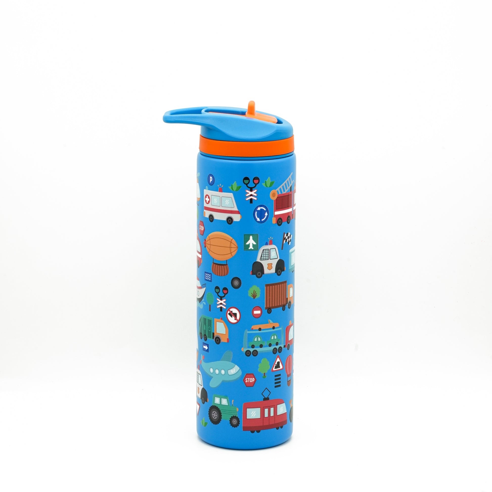 Ride into refreshment with our Transport-Themed Insulated Stainless Steel Water Bottle!